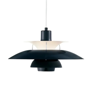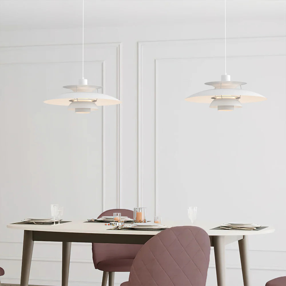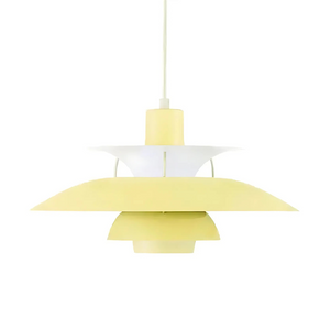 Laat je betoveren door het iconische silhouet en de speelse kleurencombinaties van deze Deense hanglamp. Met haar gelaagde metalen kap verspreidt ze een zachte, gelijkmatige gloed die zowel functioneel als sfeervol is.