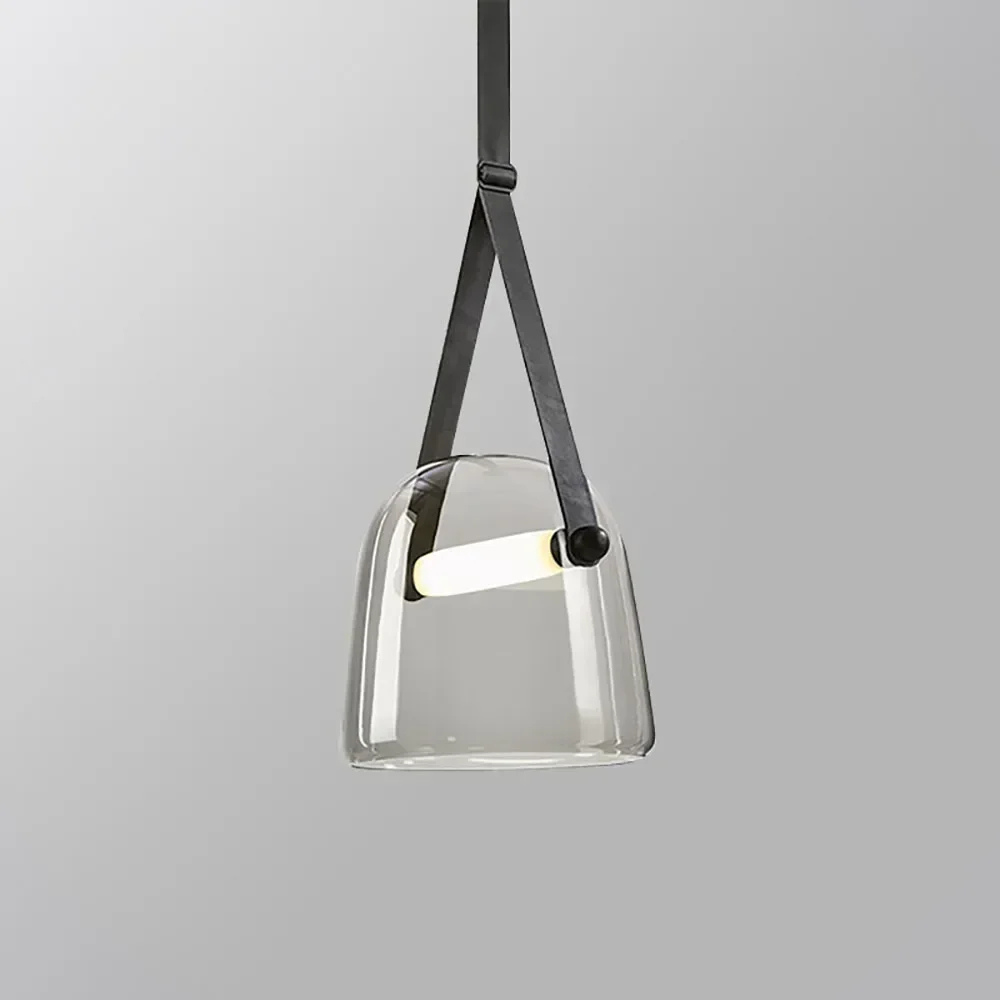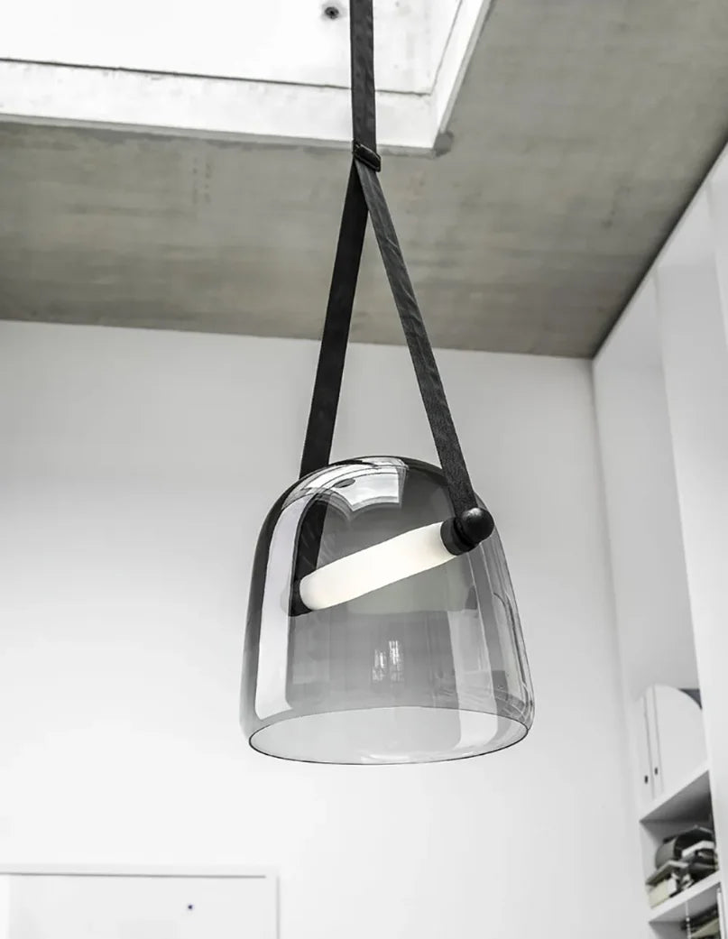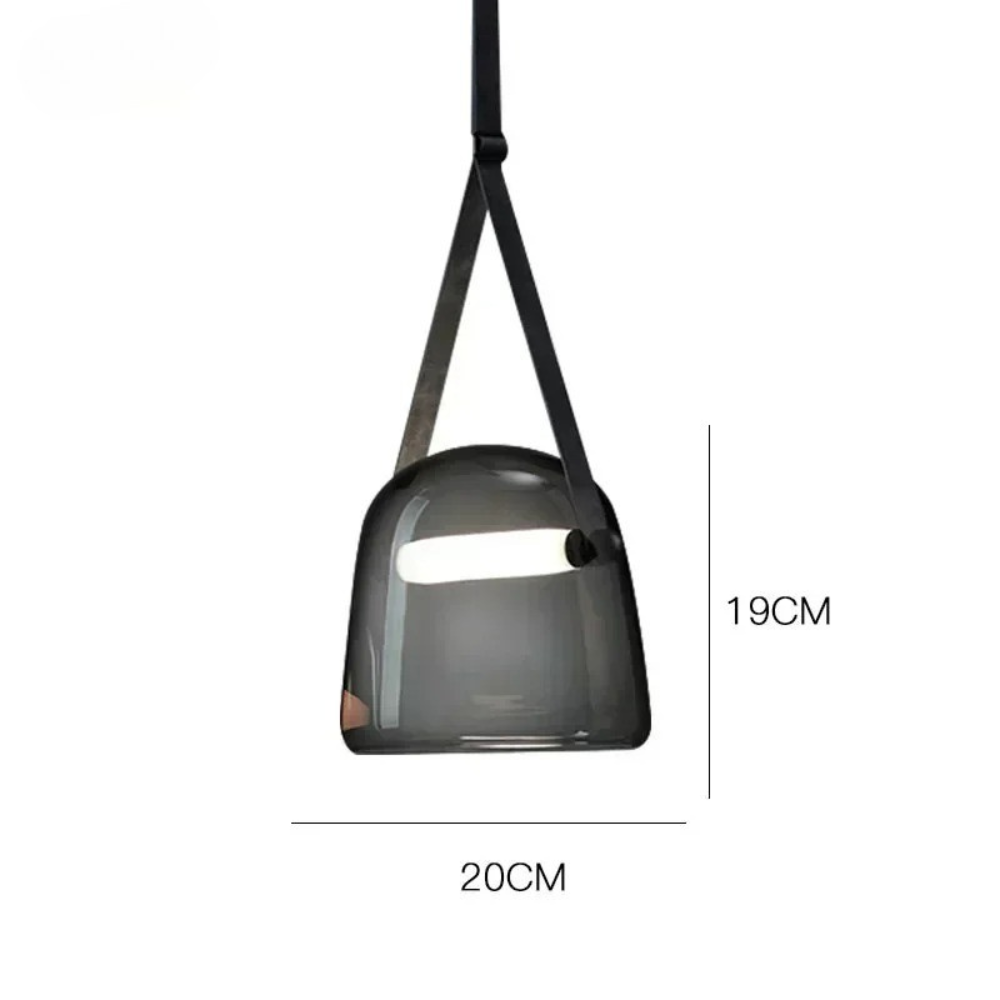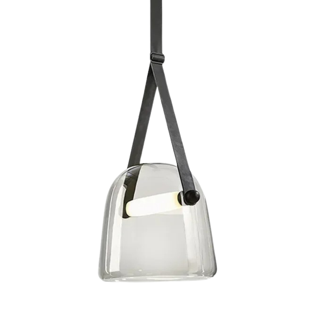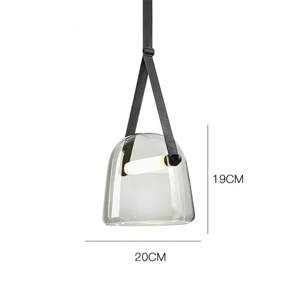 Design hanglamp glas met leren band: Elegante glazen hanglamp met warme, neutrale of witte LED voor een verfijnd interieur