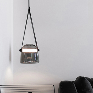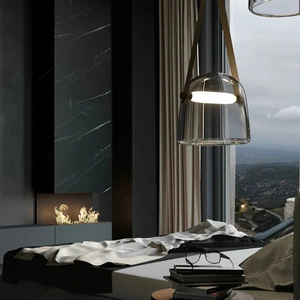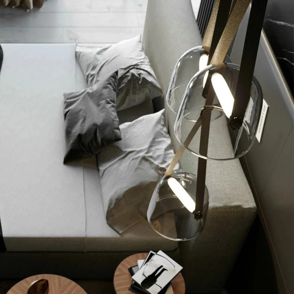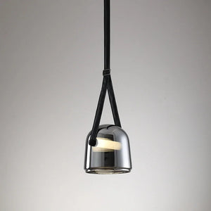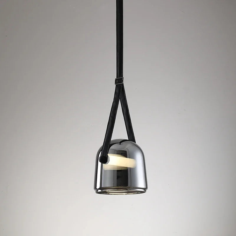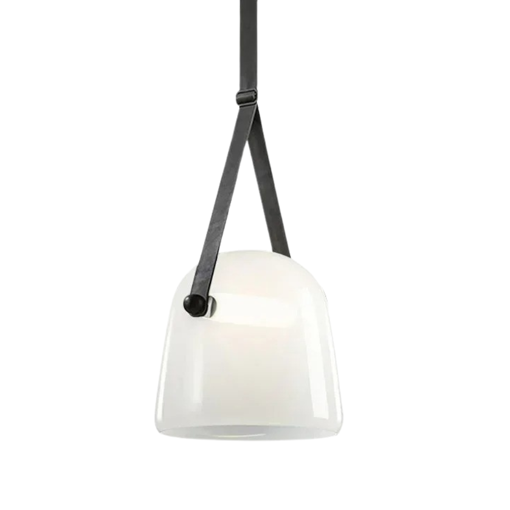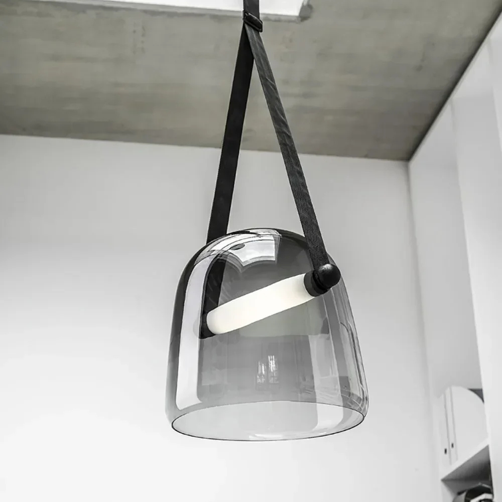 Design hanglamp glas met leren band: Elegante glazen hanglamp met warme, neutrale of witte LED voor een verfijnd interieur