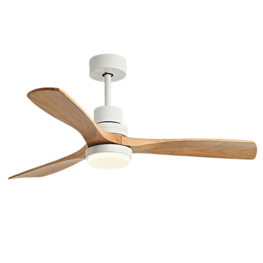 Design plafondventilator met houten bladen en LED lamp: een stijlvolle bries en sfeervol licht in één