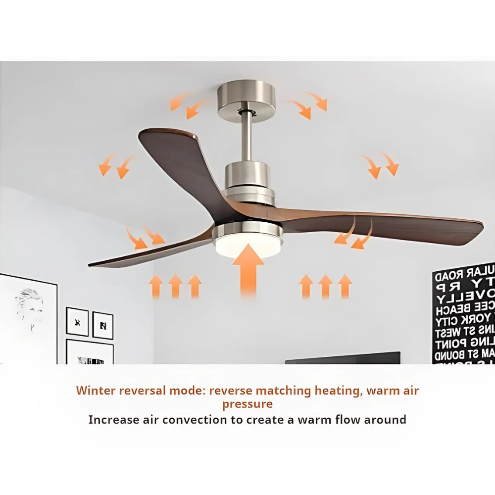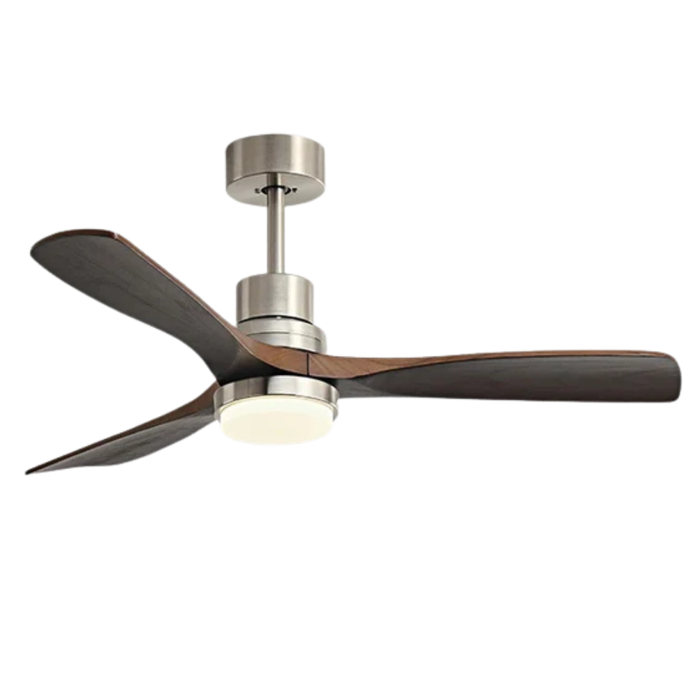 Breng verfijning en comfort samen met deze design plafondventilator met houten bladen en geïntegreerde LED-verlichting. De elegante combinatie van zwart walnoothout en geborsteld metaal zorgt voor een warme, eigentijdse uitstraling die zowel functioneel als decoratief is.
