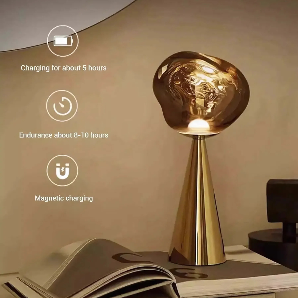 Design tafellamp lava oplaadbaar glazen bol: Sculpturale verlichting met een warme, moderne ziel