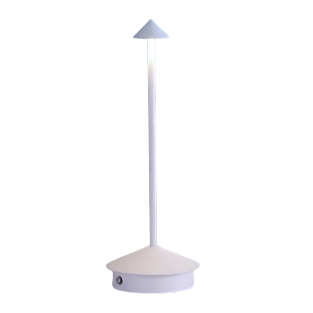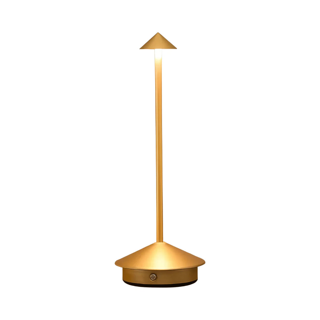 Laat je betoveren door de subtiele kracht van deze draadloze tafellamp. Met haar minimalistische silhouet, conisch kapje en verfijnde metalen afwerking voegt ze een stijlvol en functioneel accent toe aan elke ruimte. Dankzij het draadloze ontwerp en de dimbare LED-verlichting, biedt deze lamp de ultieme vrijheid en sfeer, waar je haar ook neerzet.