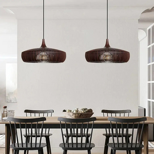 Laat je betoveren door de natuurlijke elegantie van deze Hanglamp eettafel hout, een meesterwerk van houten vakmanschap dat jouw interieur verrijkt met een zachte, uitnodigende gloed. De subtiele open structuur van de houten lamellen verspreidt het licht op een warme en diffuse manier, waardoor een spel van schaduw en licht ontstaat dat de ruimte tot leven brengt.