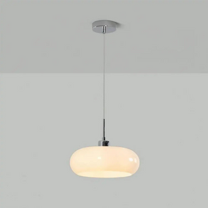 De matte glazen kap omhult het licht en creëert een harmonieuze sfeer vol zachtheid en sereniteit. Perfect boven jouw eettafel, in de woonkamer of in een stijlvolle hal: deze lamp transformeert elke ruimte tot een oase van comfort en klasse.