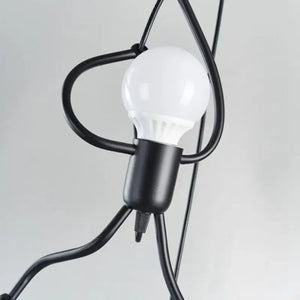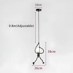 De hanglamp in de vorm van een klimmend mannetje brengt speelsheid en verfijning in elk interieur. -