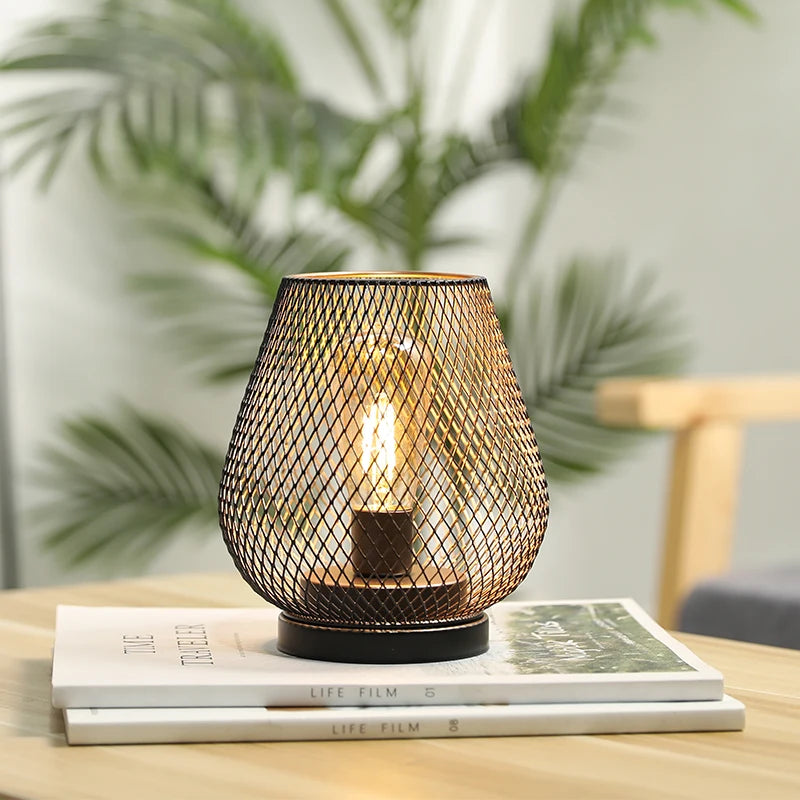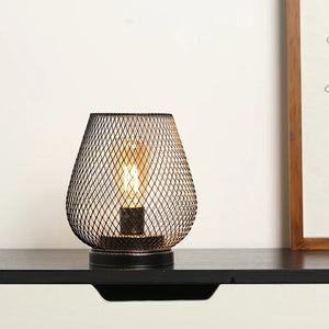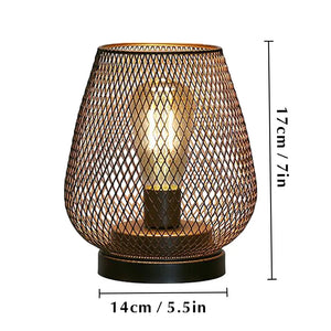 Industriele tafellamp op batterij met warme LED-verlichting en metalen gaasdesign