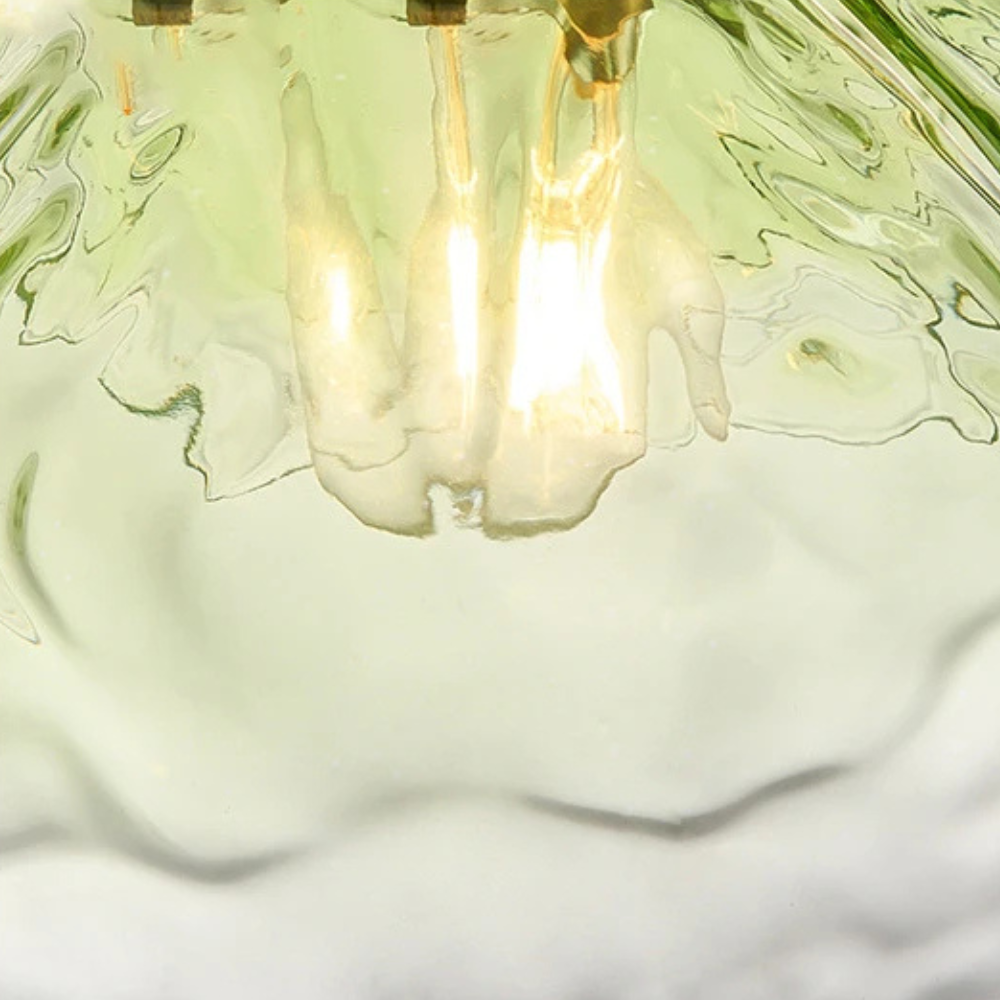 - Kleur(en)/Afwerking(en): Transparant / groen / blauw / roze glas met messing details