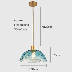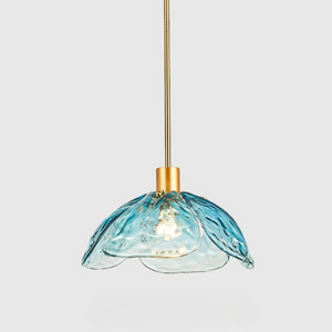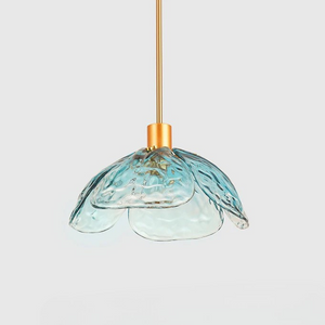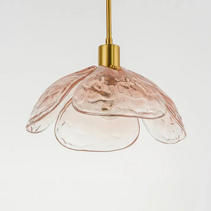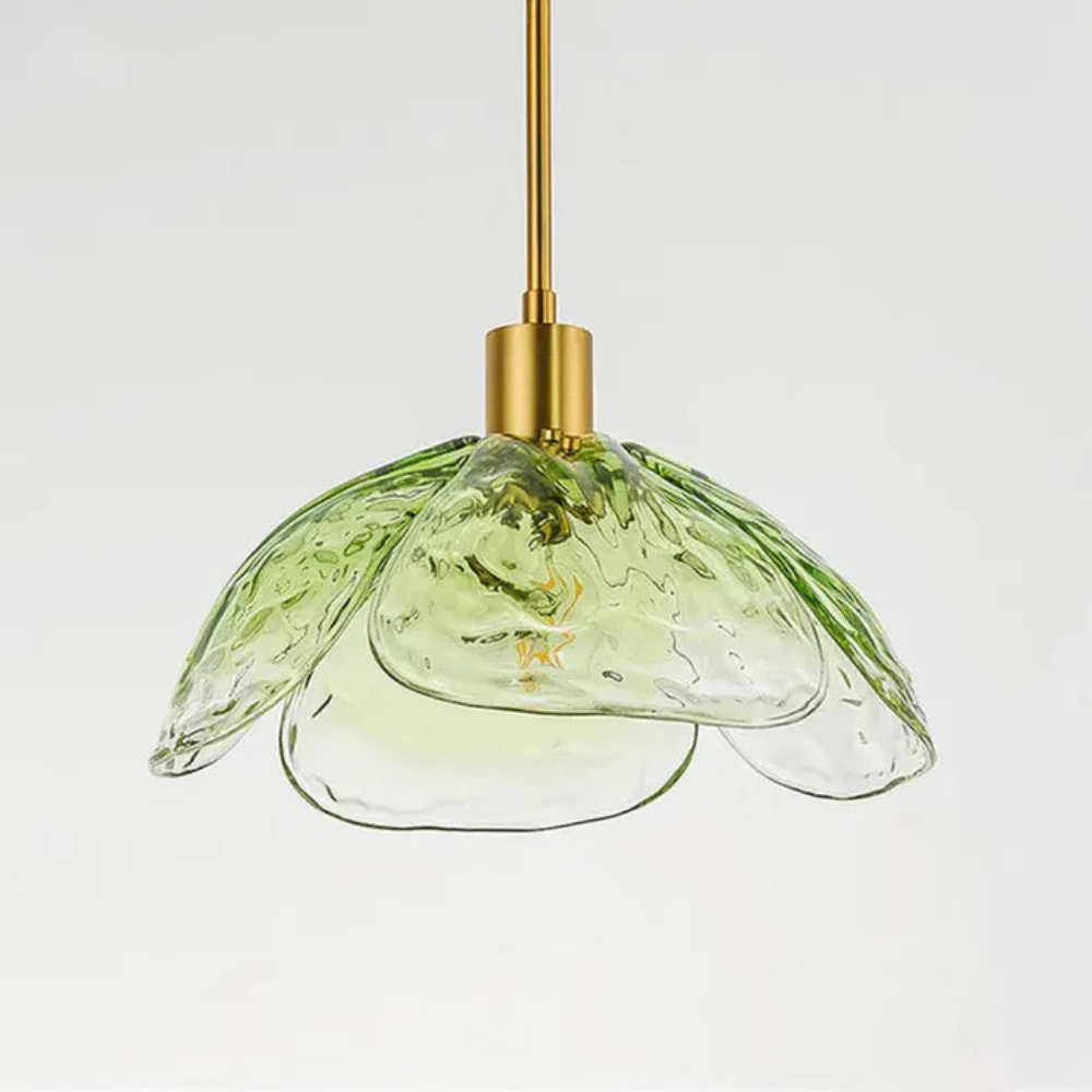 Laat je betoveren door de verfijnde charme van de Moderne Bloemblaadjes Hanglamp. De handgeblazen glazen bloemblaadjes vangen het licht op subtiele wijze en verspreiden een zachte, warme gloed die elke ruimte tot leven brengt. De combinatie van gekleurd glas en messing details geeft het ontwerp een unieke, luxueuze uitstraling.