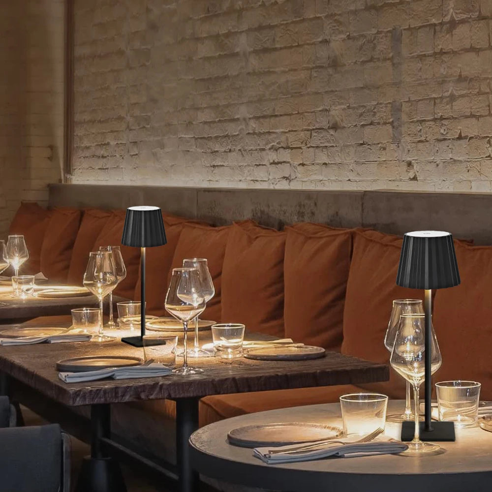 Oplaadbare klassieke tafellamp met plissé kap: Tijdloze elegantie voor elk interieur