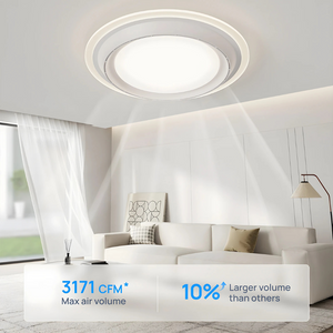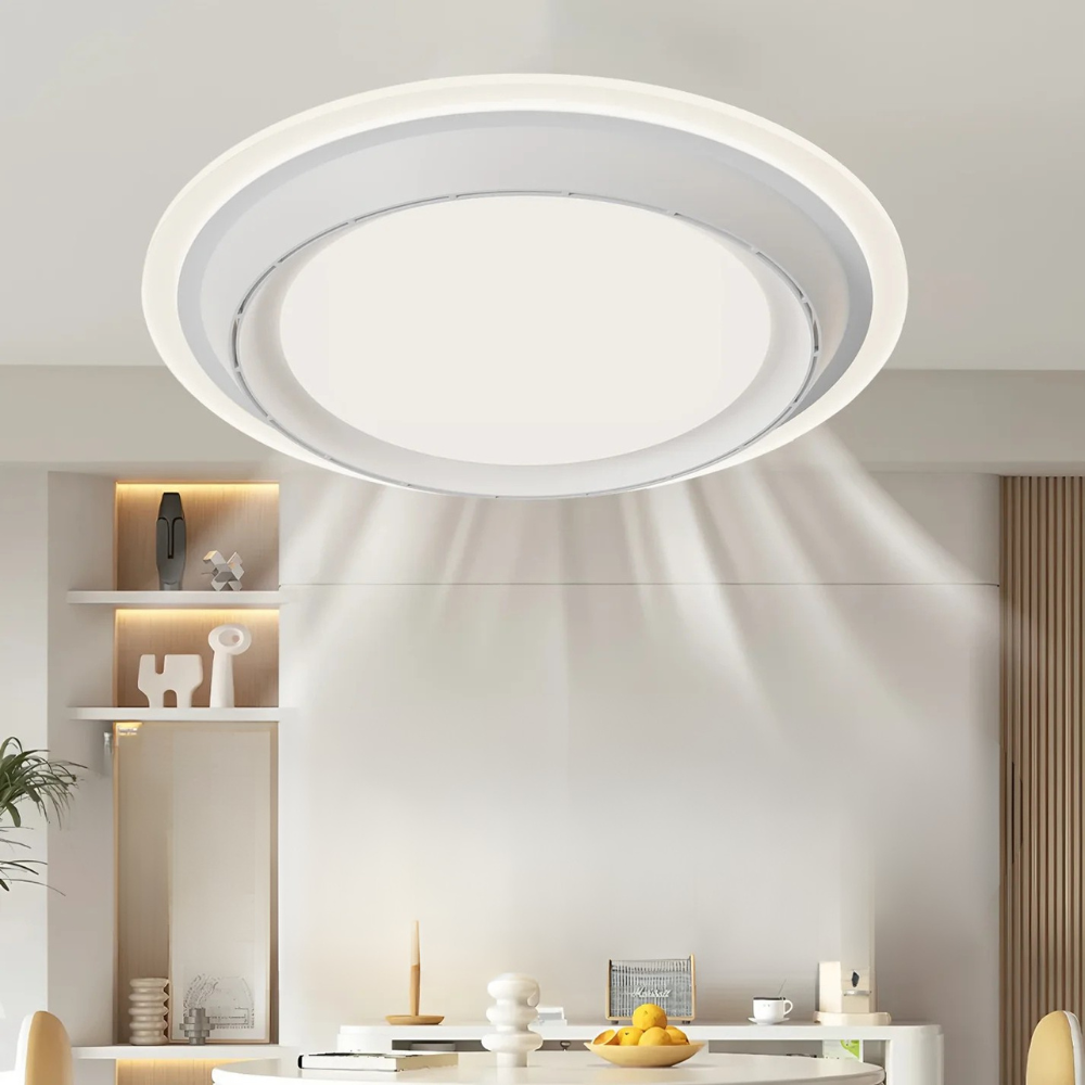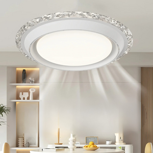 Laat jouw interieur stralen met deze bladloze plafondlamp die tegelijk een stille ventilator is. Met zijn kristalachtige rand en moderne vormgeving brengt hij een subtiele luxe in elke ruimte. De geïntegreerde LED-lichtbron zorgt voor een zachte, gelijkmatige gloed, terwijl het ventilatiesysteem een fluisterstille bries verspreidt.