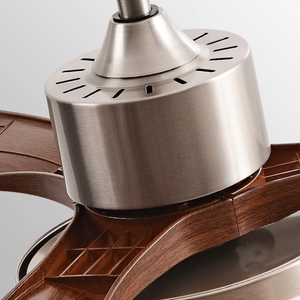Laat je verleiden door de subtiele combinatie van functionaliteit en verfijning: deze plafondventilator met lamp is meer dan een lichtbron — het is een waar designstatement. Met zijn elegante vormen, houtkleurige bladen en zachte metallic accenten brengt hij rust, stijl en comfort in elk interieur.