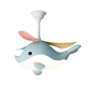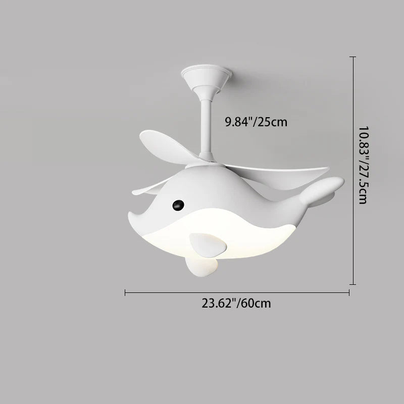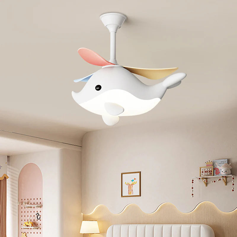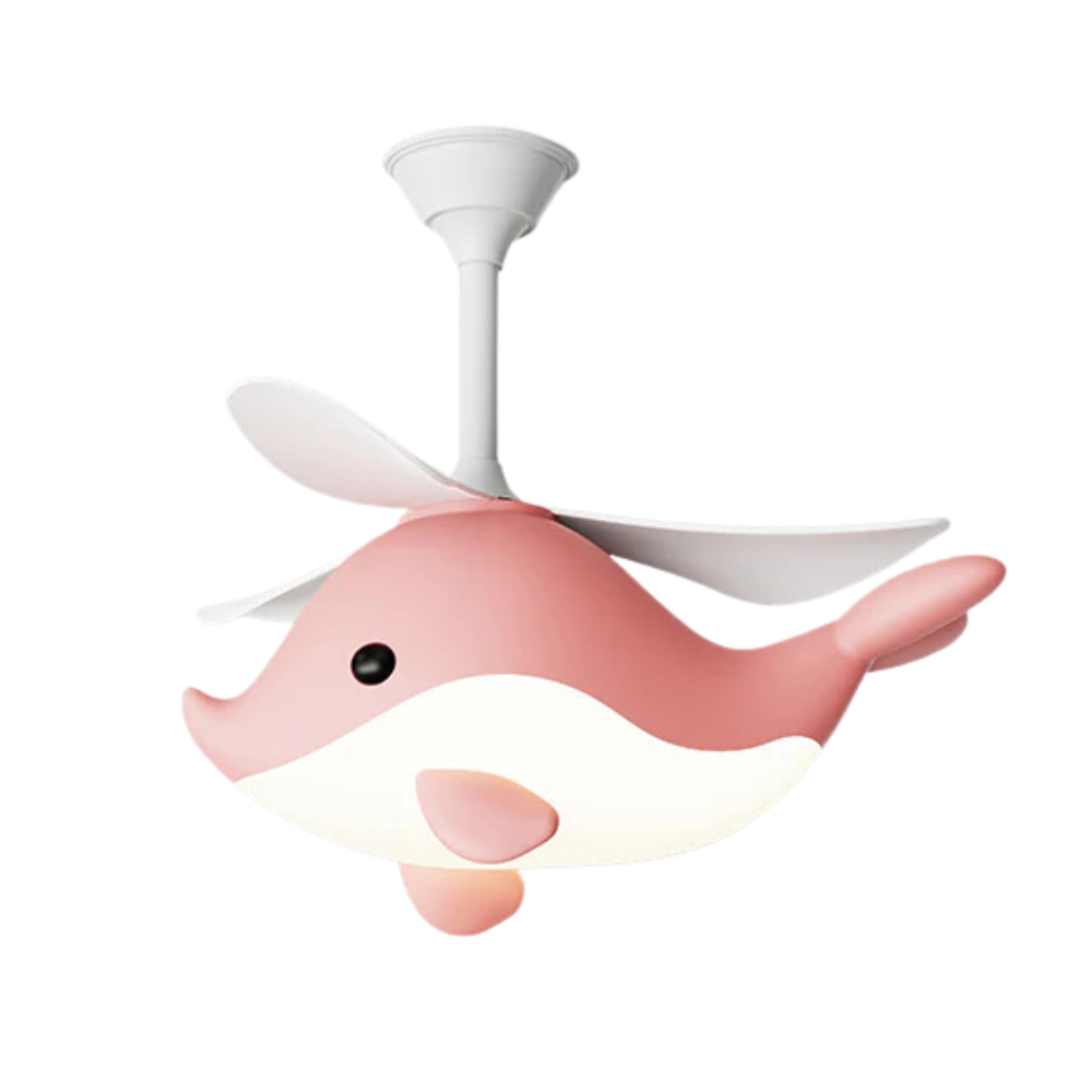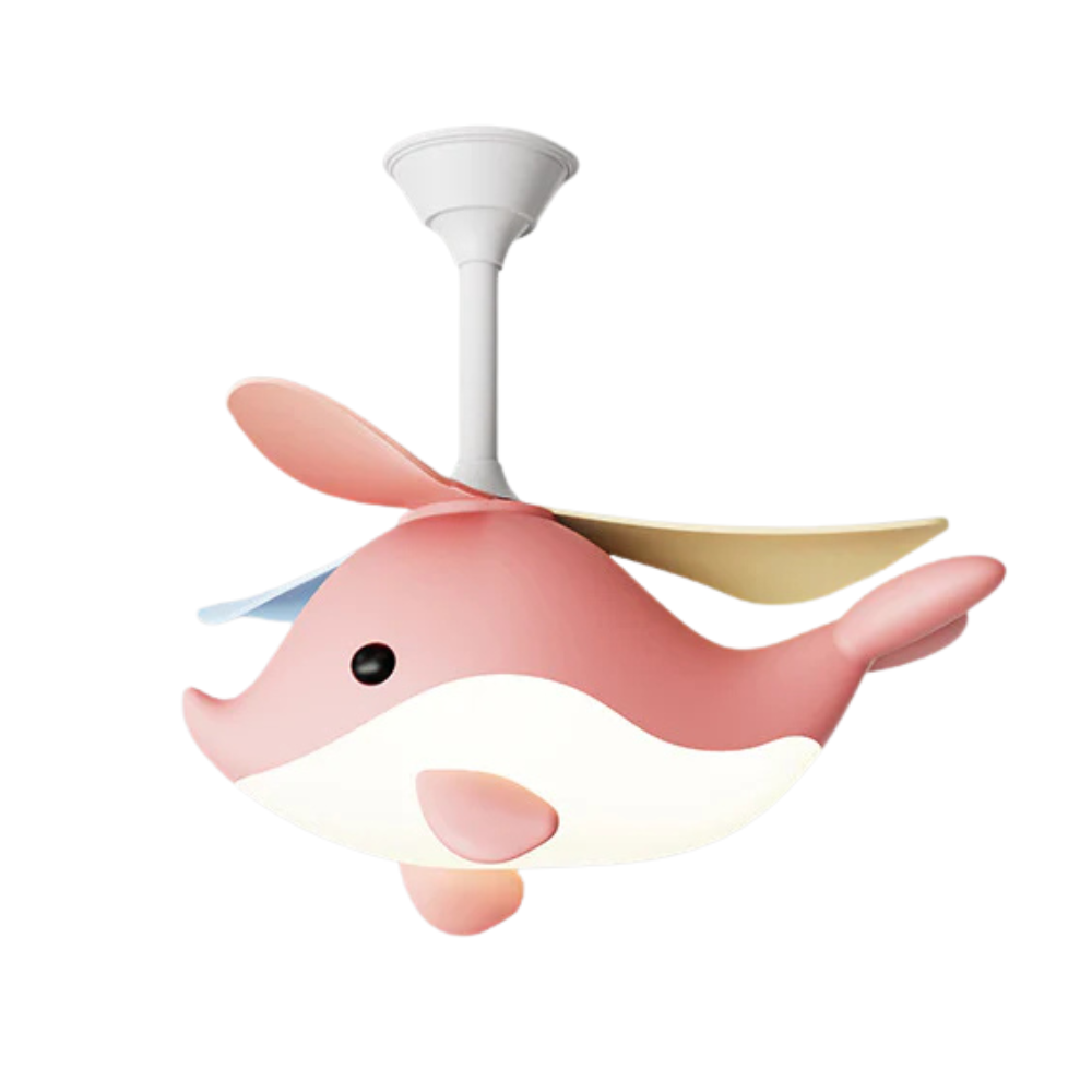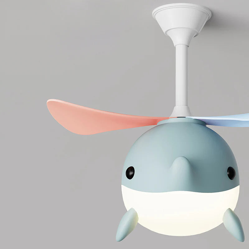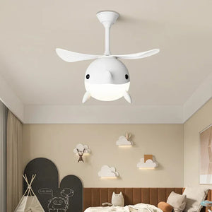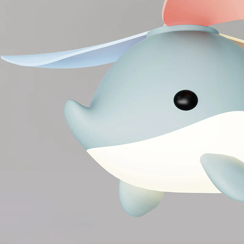 Plafondventilator voor de kinderkamer in walvis vorm met LED lamp
