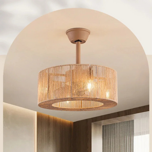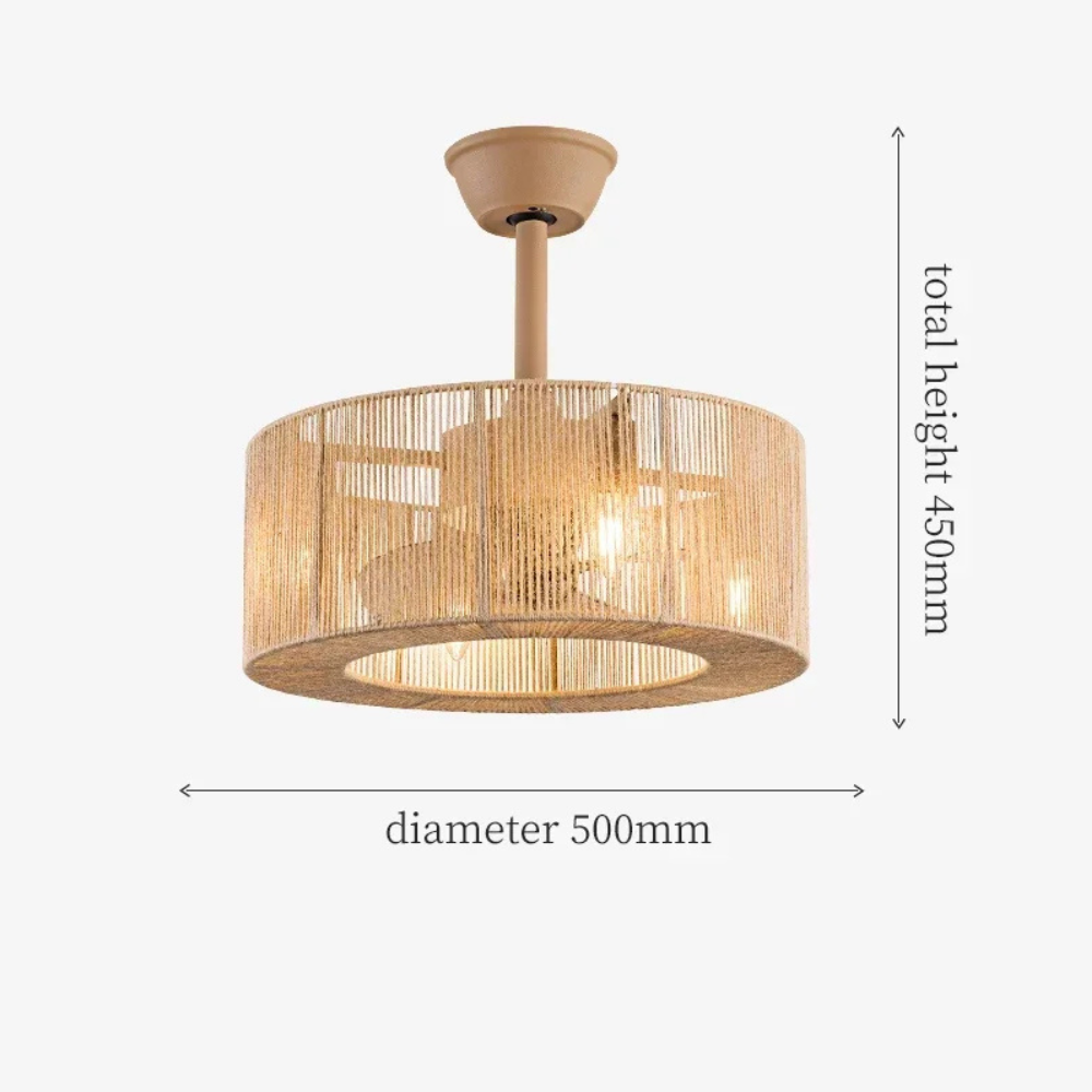 Retro Ventilator Plafondlamp van Rotan: Een stijlvolle bries van rust en verfijning