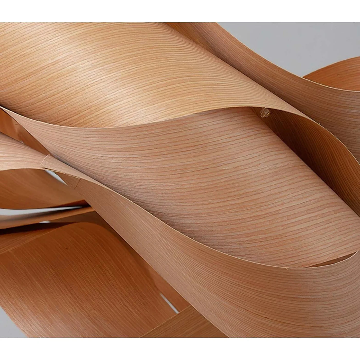 Laat je betoveren door de subtiele charme van deze Scandinavische hanglamp in hout. Met haar vloeiende lijnen en organische vormen brengt ze een rustgevende esthetiek in elke ruimte. Het gebogen houten design creëert een uniek spel van licht en schaduw dat onmiddellijk sfeer toevoegt.
