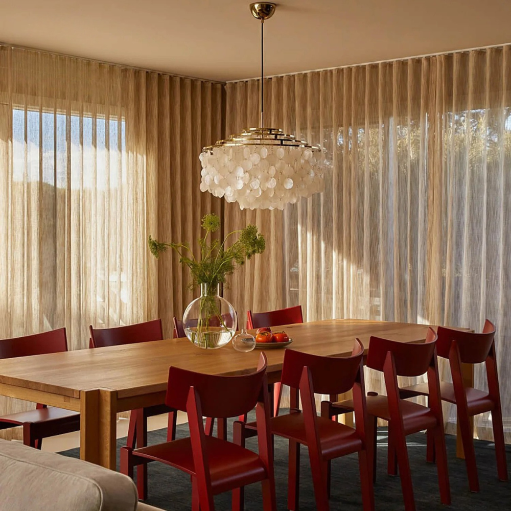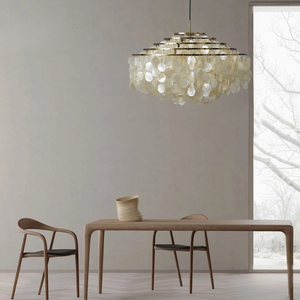 Schelpen hanglamp voor een luxueuze en warme sfeer boven jouw eettafel