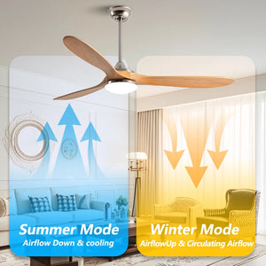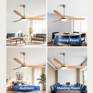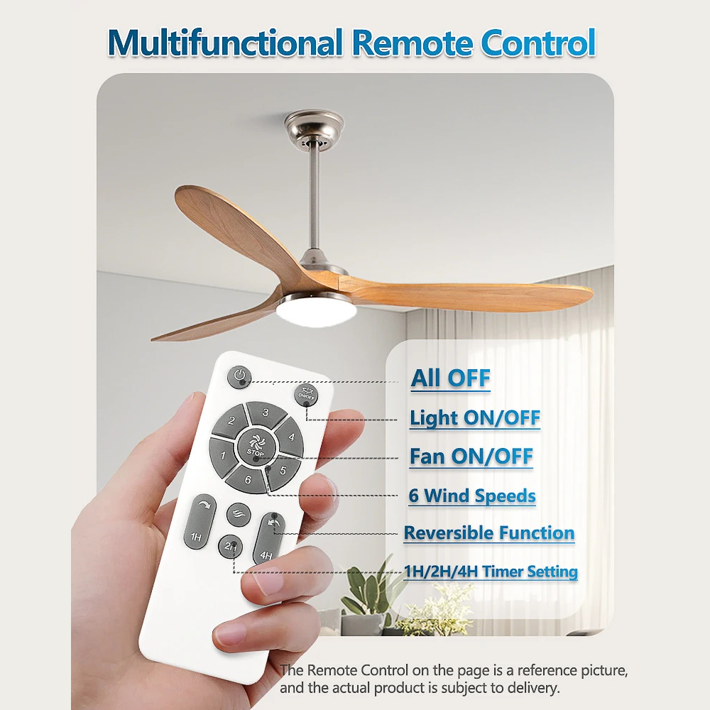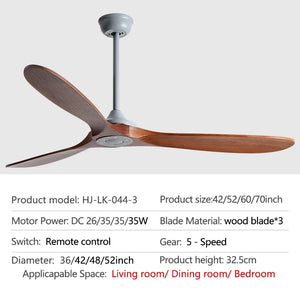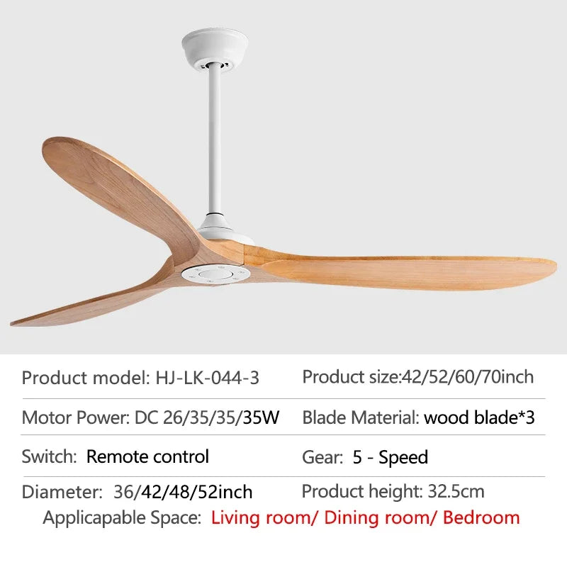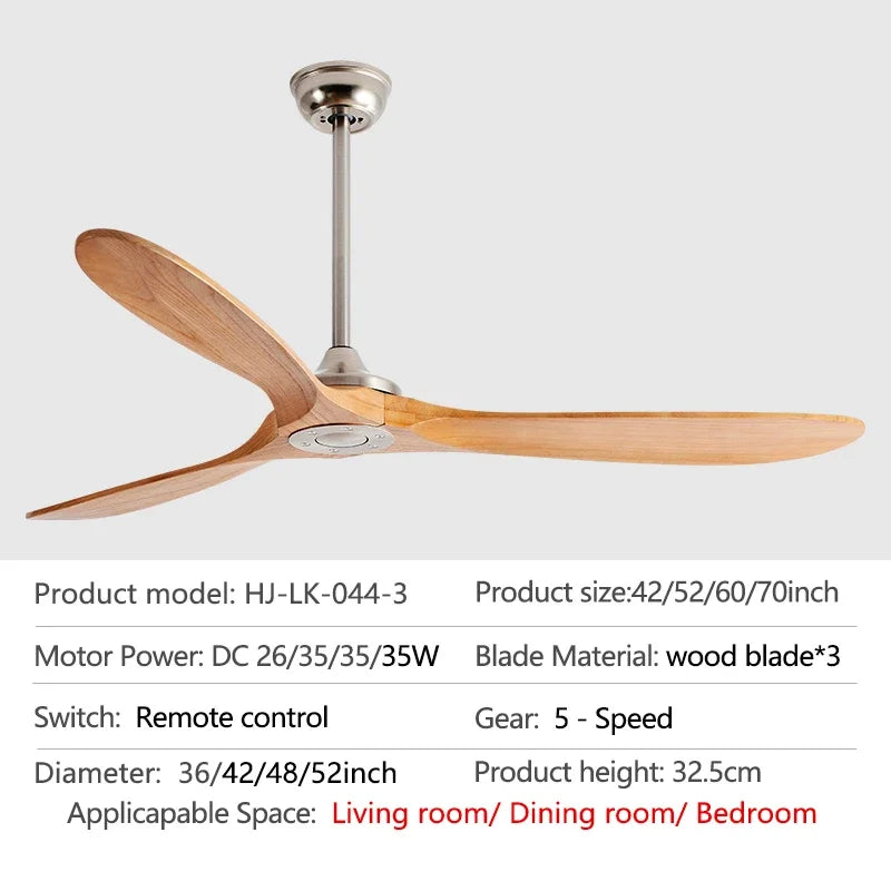 Stille design plafondventilator met houten bladen en LED lamp met afstandsbediening: natuurlijke elegantie en verkoelende rust in jouw interieur