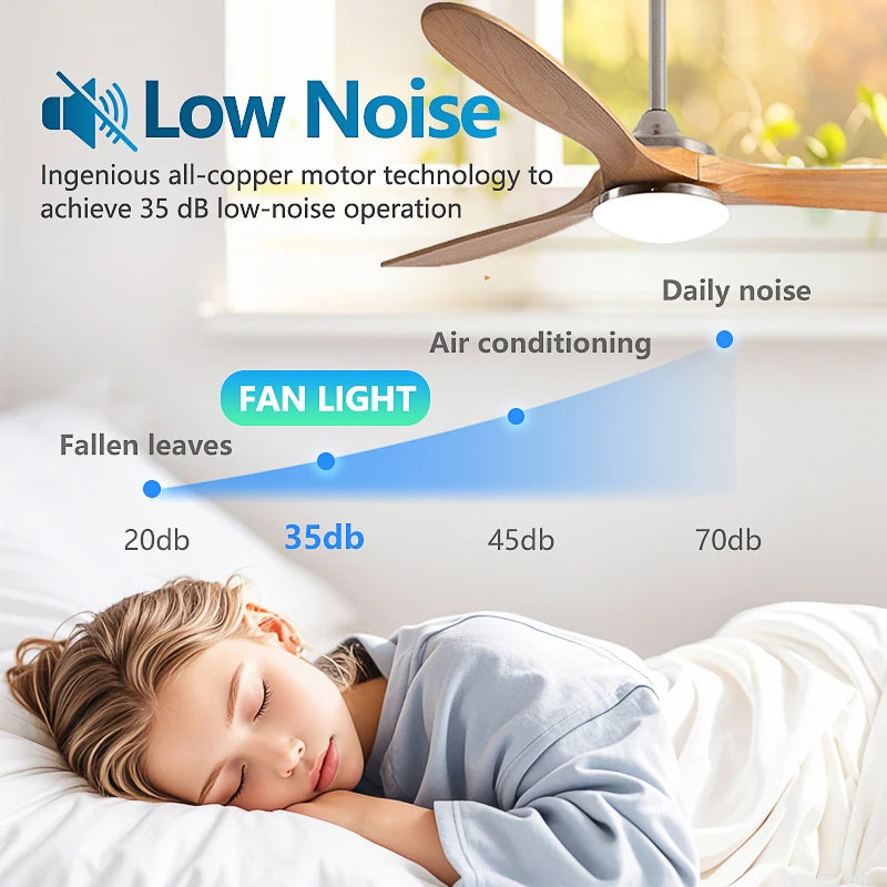 Laat je omarmen door de serene combinatie van verfijnd design en functioneel comfort. Deze stille plafondventilator met houten bladen en geïntegreerde LED-lamp tilt jouw interieur naar een hoger niveau van rust en verfijning. Met zijn vloeiende lijnen en warme houttinten is hij niet alleen een ventilator, maar een waar decoratief statement.