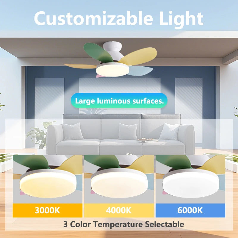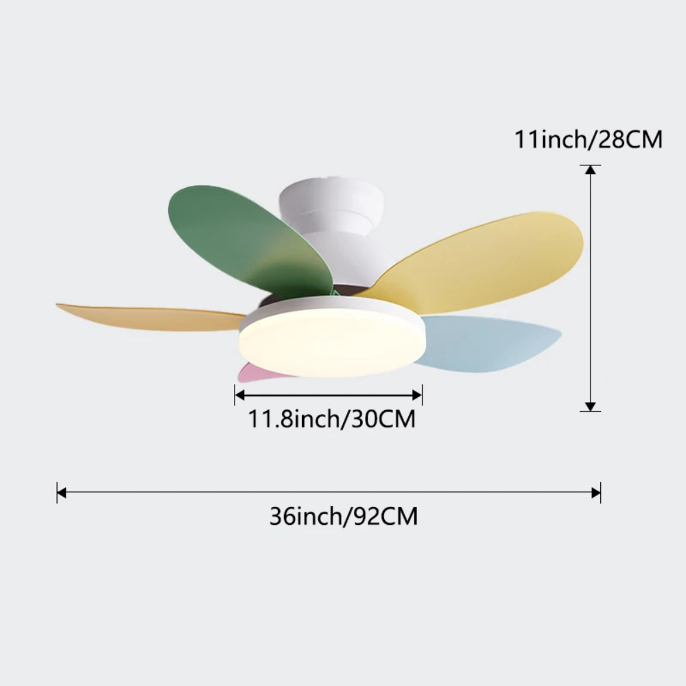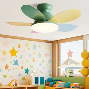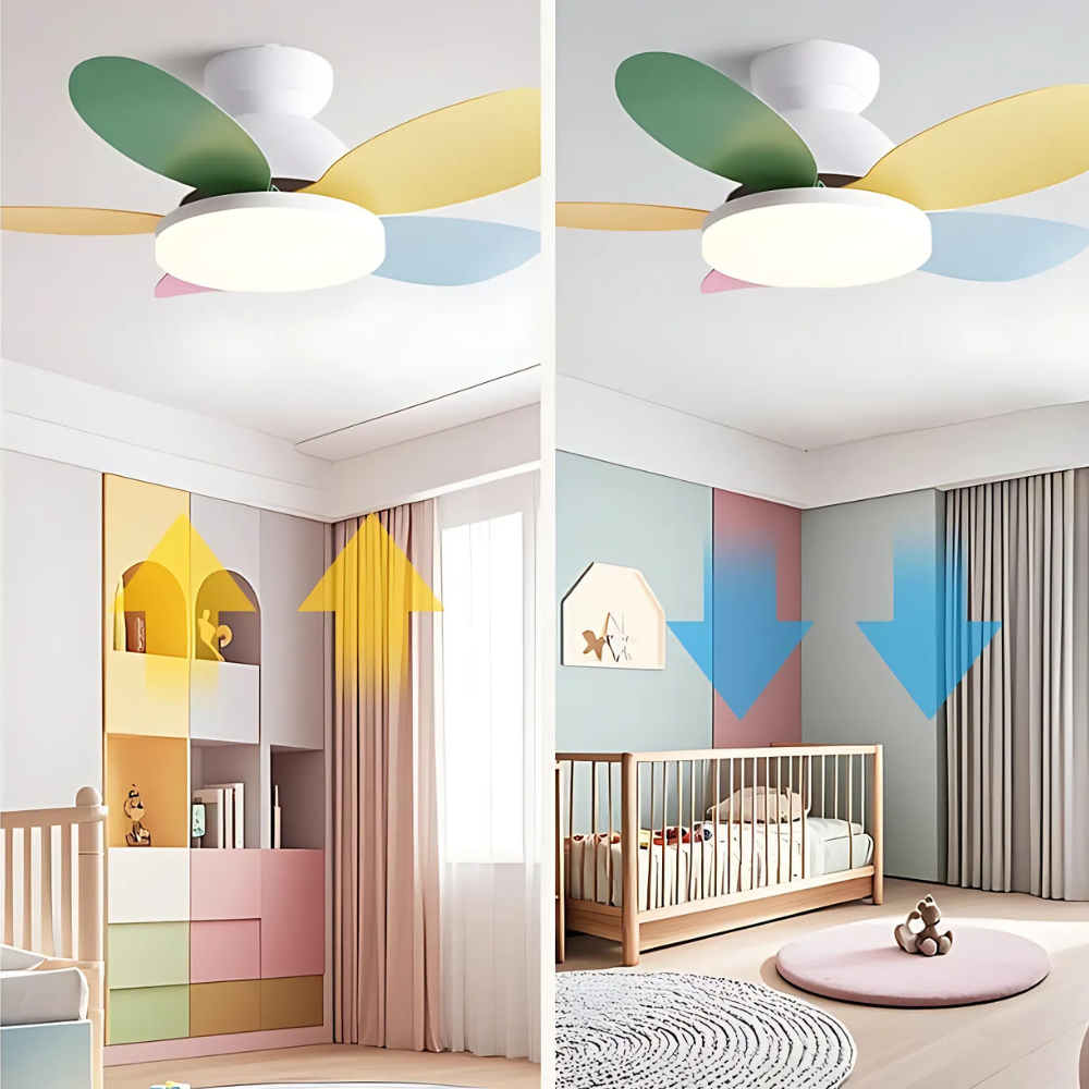 Stille plafondventilator met laag profiel voor de kinderkamer: Een kleurrijk en elegant designstuk voor een serene nachtrust
