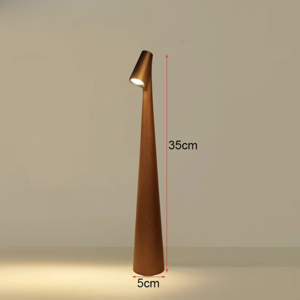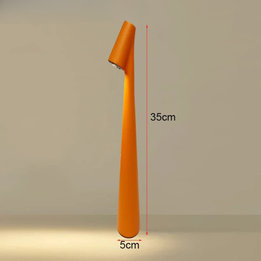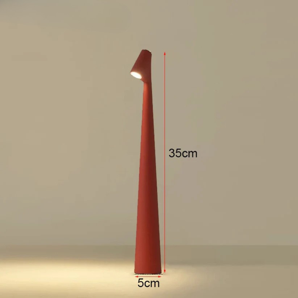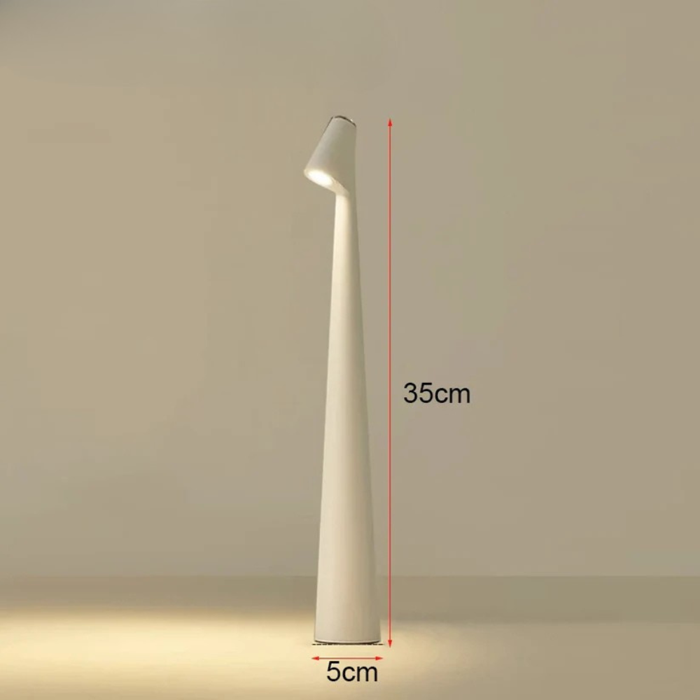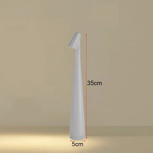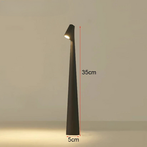 Laat je betoveren door de sculpturale eenvoud van deze oplaadbare tafellamp. Met haar ranke, taps toelopende silhouet en subtiele lichtstraal is ze niet alleen een lichtbron, maar ook een artistiek object dat de aandacht trekt zonder te overdrijven.