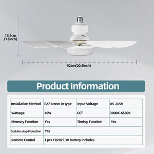 Ventilator Plafondlamp voor E27 Fitting met LED en Afstandsbediening – Stijlvol comfort met een zachte bries
