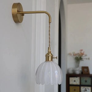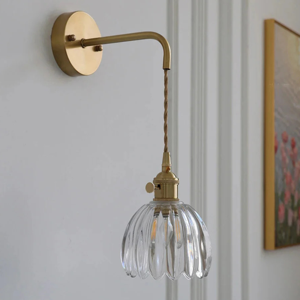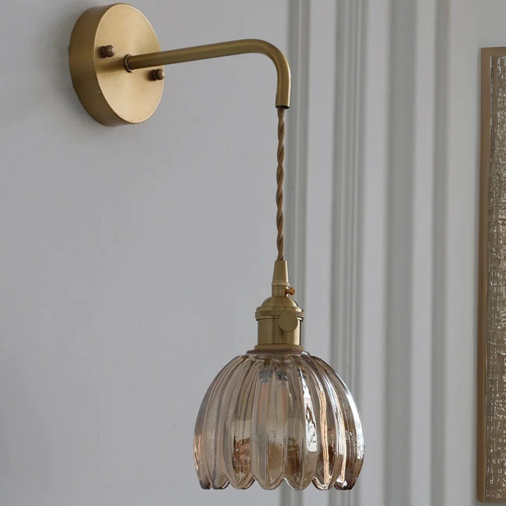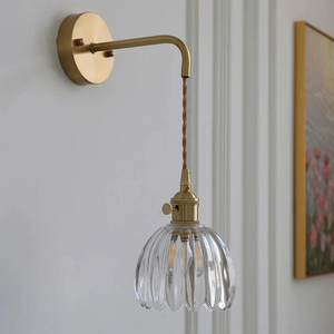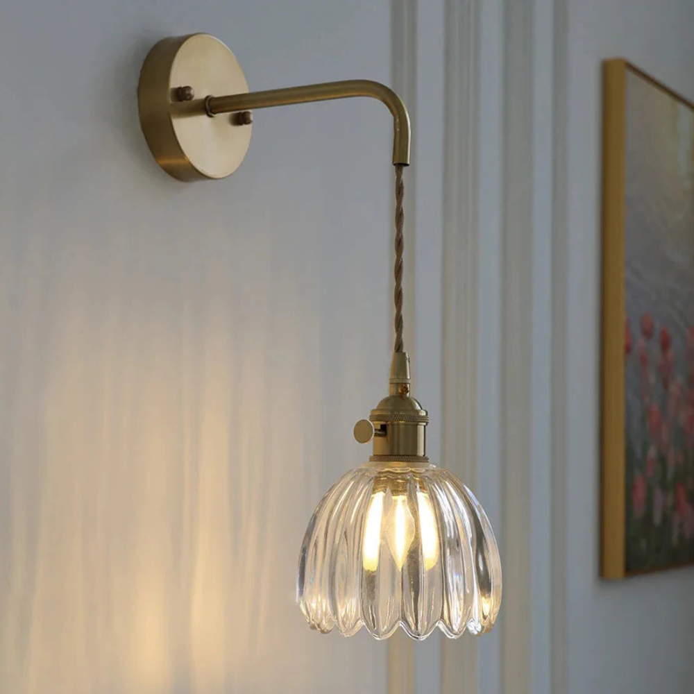 Laat je betoveren door de tijdloze charme van deze Vintage wandlamp glas – een verfijnd samenspel van helder geribbeld glas en een elegante messing afwerking. Elk detail is doordacht ontworpen om een warme, uitnodigende sfeer te creëren, zonder in te boeten op stijl.
