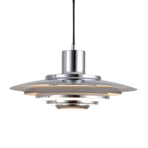 Laat je verleiden door de verfijnde uitstraling van de zilveren hanglamp, waar strakke lijnen en subtiel glanzend metaal samenkomen. Deze hanglamp combineert functionaliteit met een stijlvol Art Deco-karakter, waardoor jouw ruimte direct een luxueuze toets krijgt.